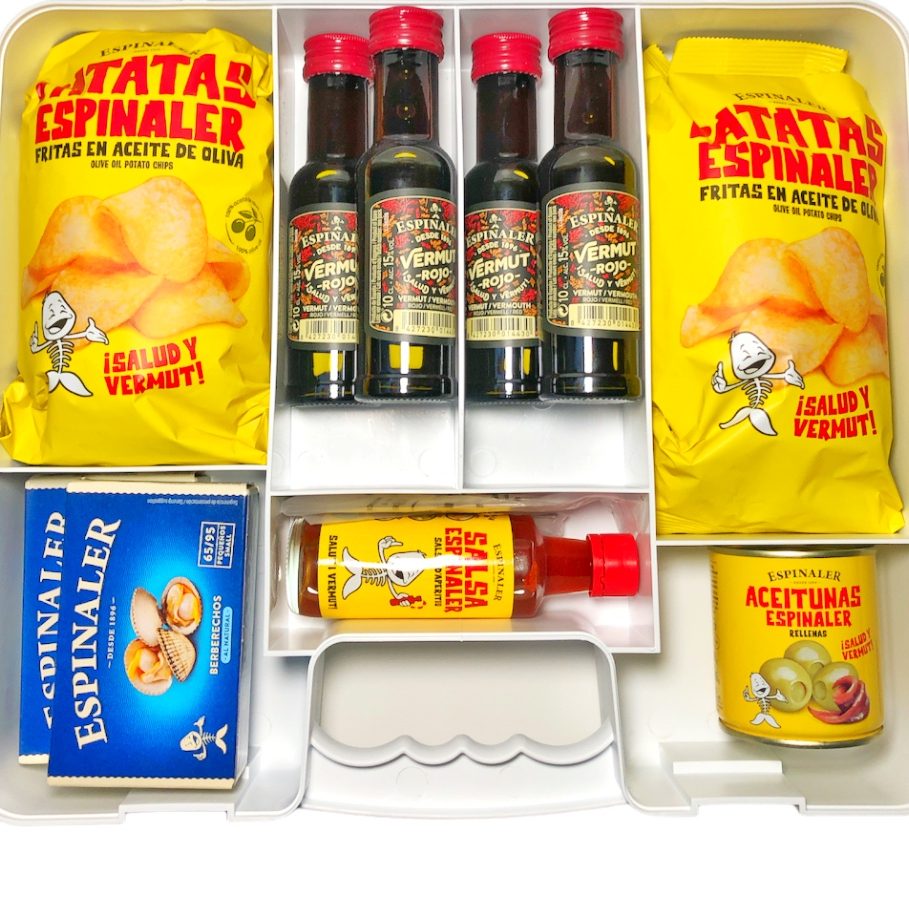 VERMUTIQUÍN®, es un aperitivo de emergencia y el pack vermutero más cachondo del mundo. Con todo lo necesario para un aperitivo de calidad para 4 personas, es el regalo ideal para ese amigo pijo que tiene barco en la Costa Brava, para triunfar en la barbacoa de tu cuñado, para llevarte de escapada el fin de semana o para regalar a ese colega friki del vermut!!